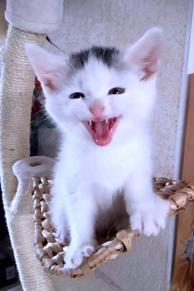 Gappie komt van een boerderij waar helaas niesziekte rond waart. In oktober 2022 is hij met zijn broertjes en zusjes naar de Stichting gekomen. Hulp op deze boerderij was hard nodig, we hebben daar veel kittens van opgevangen en veel poezen en katers geneutraliseerd zodat dit niet nogmaals kan gebeuren. Medische hukp voor de kittens was hard nodig, want niesziekte tast de oogjes en het ademhalingssysteem van katten aan. Niesziekte is één van de ziektes waar je je kat jaarlijks voor laat vaccineren, net zoals wij mensen dat doen met bijvoorbeeld de griepprik. Helaas bleef bij Gappie zijn snotneus langer hangen dan bij zijn broertjes en zusjes. Na vele onderzoeken voor het Medisch Centrum voor Dieren te Amsterdam hebben we nu de beste zorg kunnen bieden aan Gappie. Dit is een combinatie van stomen, medicatie en neus schoonhouden. Het is best intensief, maar Gappie snapt dat als hij mee werkt, hij beter kan ademhalen. Hij stapt zelfs vrijwillig de reismand in om even lekker te stomen. Op dit moment wordt Gappie bijgestaan door het Medisch Centrum voor Dieren te Amsterdam. Als er iets is, staan zij klaar om Gappie te helpen!