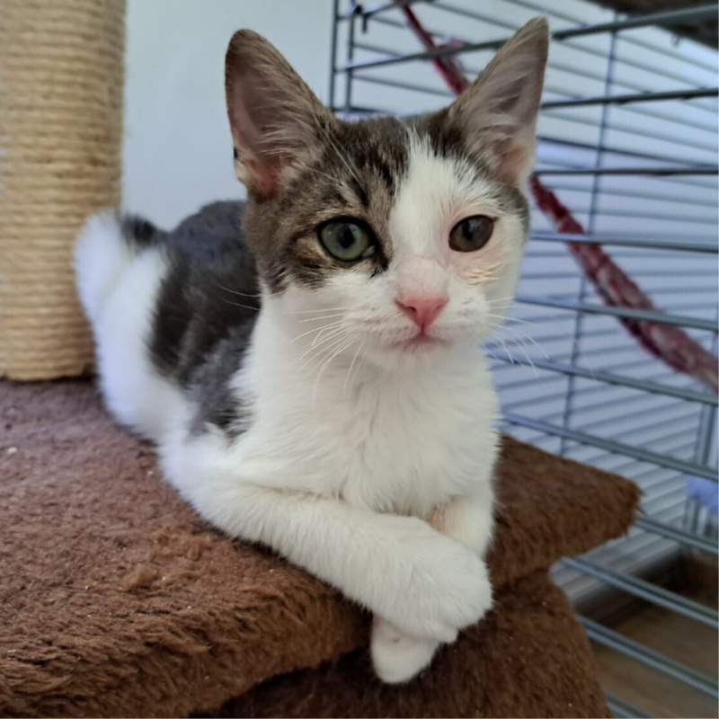 Momo werd een jaar geleden geplaatst samen met een andere kat. Na een flinke periode dat het heel goed ging, werd dat minder toen ze in het voorjaar meer naar buiten gingen. Hij werd een stuk nukkiger en was eigenlijk niet meer zichzelf. Door zijn onzekerheid reageerde hij met blazen en grommen, wat voor spanning zorgde in huis. Daarom is hij teruggekomen in opvang en hopen we nu de perfecte plek voor hem te vinden – een thuis waar hij écht zichzelf mag zijn.