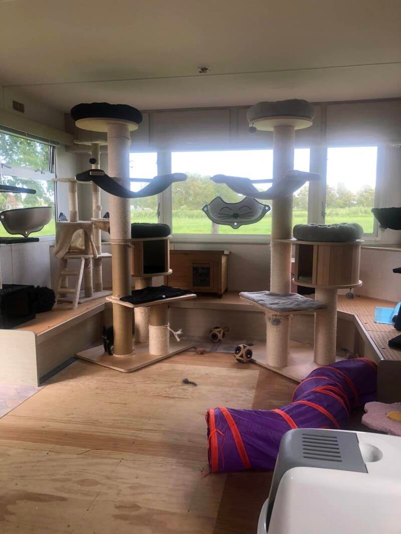 Begin juli 2023 was het zover. Onze oude Pipowagen waar wij kittens en moederpoezen opvingen is aan zijn eind en er komt dankzij steun van Dierenlot een heus nieuw Poetsiepaleis.