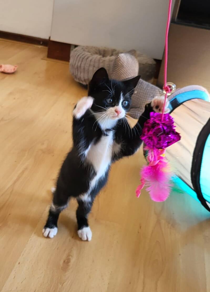 Een paar van onze opvanggezinnen zijn gespecialiseerd in het socialiseren van schuwe kittens. Deze zijn ergens op een verborgen plekje geboren en opgegroeid en hebben te kort positieve ervaring kunnen opdoen met mensen. Een inhaalslag is soms mogelijk maar vergt heel veel tijd en geduld. Als het lukt en we later van de adoptanten horen hoe lief en gezellig ze zijn geworden, maakt dat het allemaal waard.